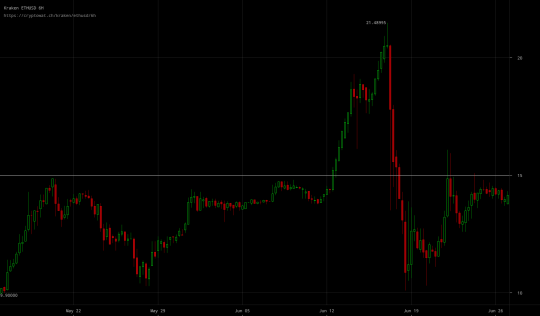 Júniusra tehát ott tartottunk, hogy az Ethereum megbízhatóan működött, és minden jel arra mutatott, hogy hamarosan értelmes alkalmazásokkal fog benépesülni. Ami a befektetések nyelvére lefordítva azt jelenti, hogy az éter árának újabb szintugrása egyre valószínűbbé vált. És valóban, az árfolyam egyre szorosabban tapadt rá a márciusban beállított 15 dolláros történelmi csúcsára, majd június 12-én erőteljesen kitört és indult meg nagy lendülettel a Hold felé.
